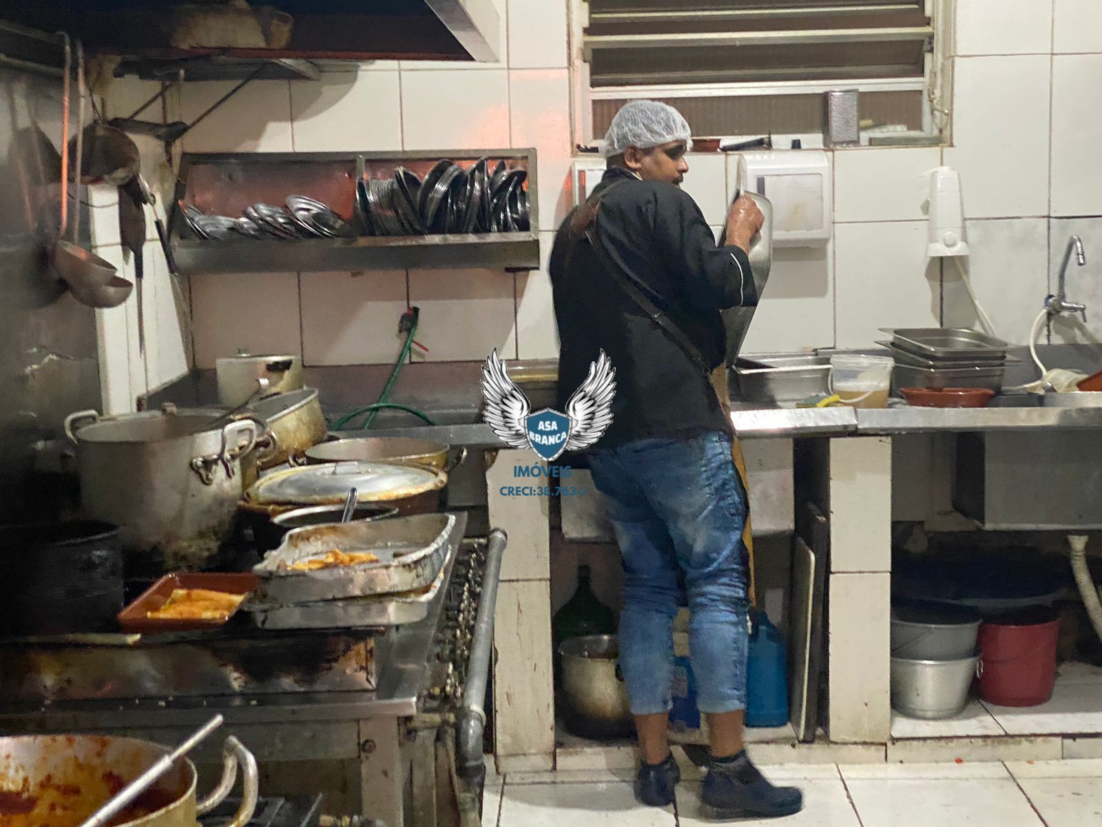 Imóvel comercial, com 240 m2 de construção (8m de frente e 30m de fundo), com dois banheiros e uma cozinha.