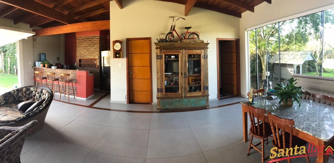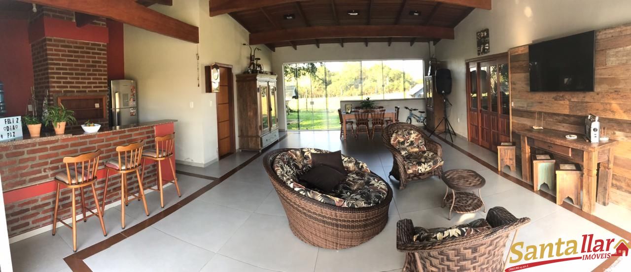 Possuí uma casa com 152 m² (02 dormitórios, quiosque, área gourmet e demais dependências) e um pavilhão medindo 14m X 14m, piso polido. Luz trifásica, poço artesiano e um amplo pátio fechado e com portão eletrônico.