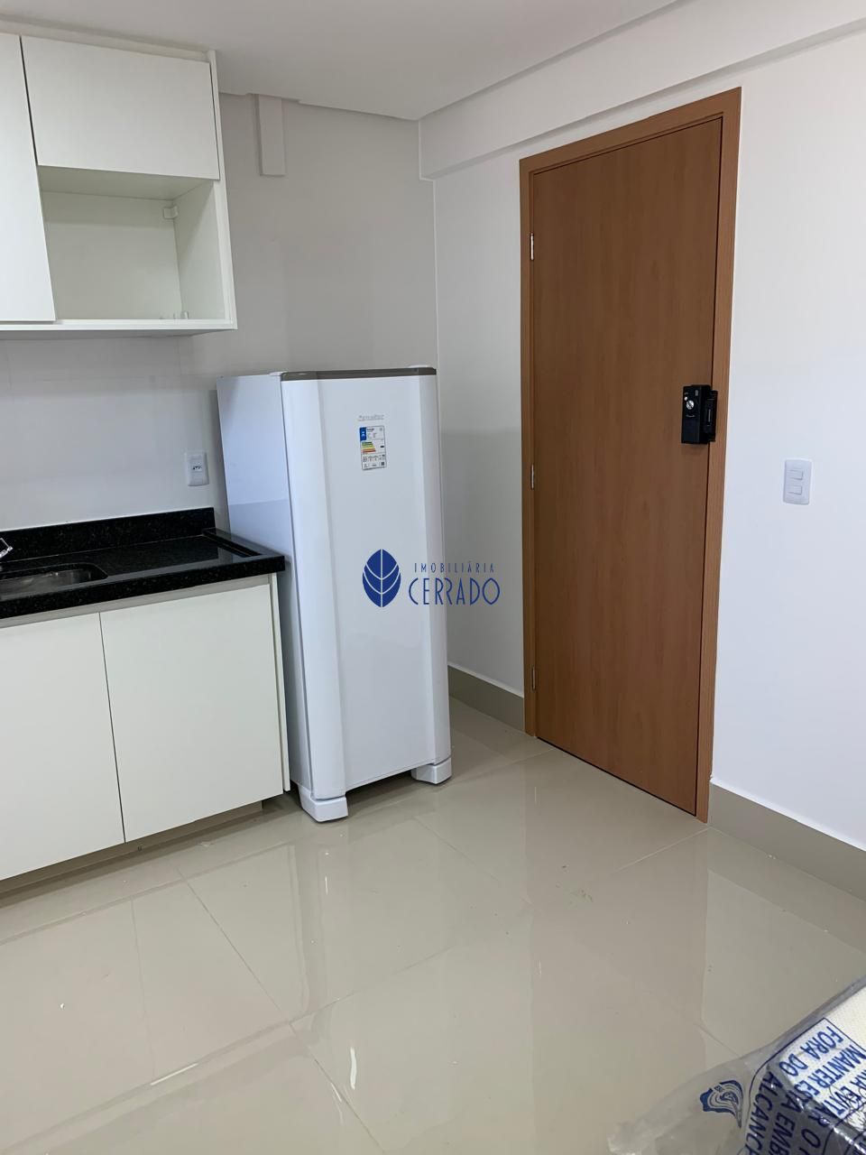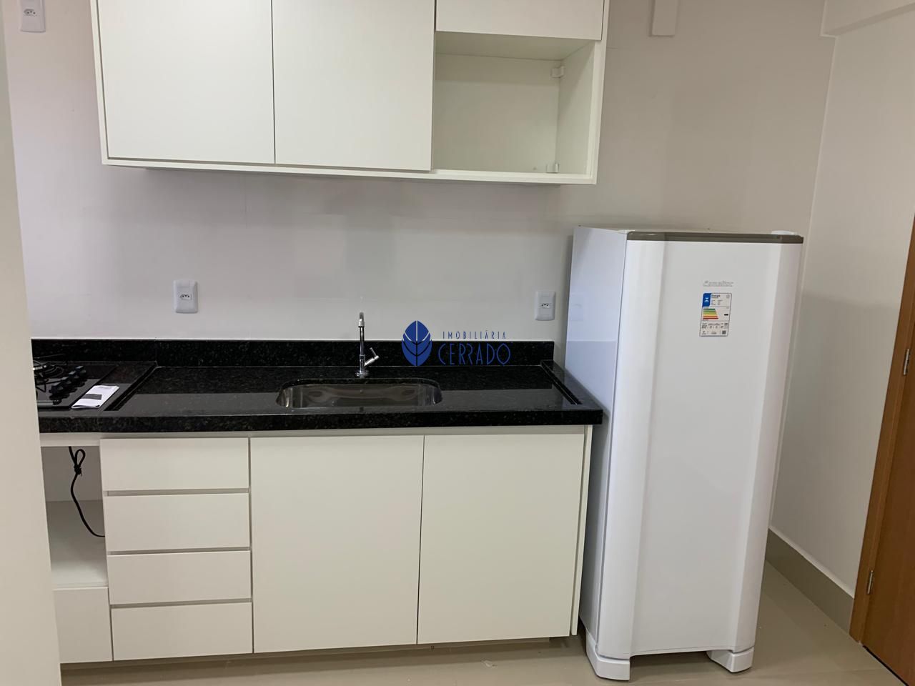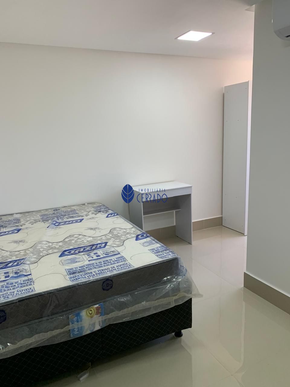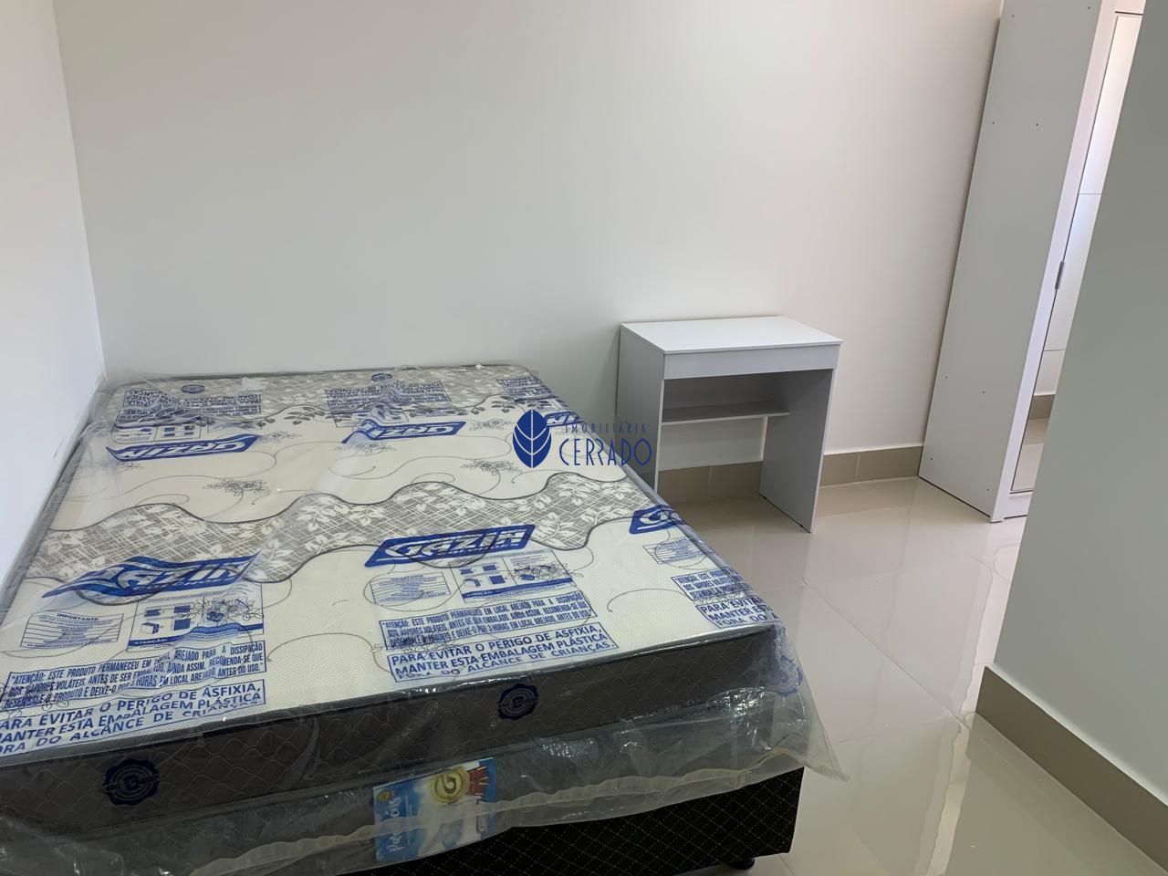 A Kitnet possui 1 quarto com ar condicionado, geladeira, armários na cozinha e banheiro, chuveiro e kit banheiro, ducha higiênica.
