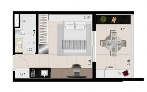 * Tipo: Apartamento • Área útil: 29,219 m²