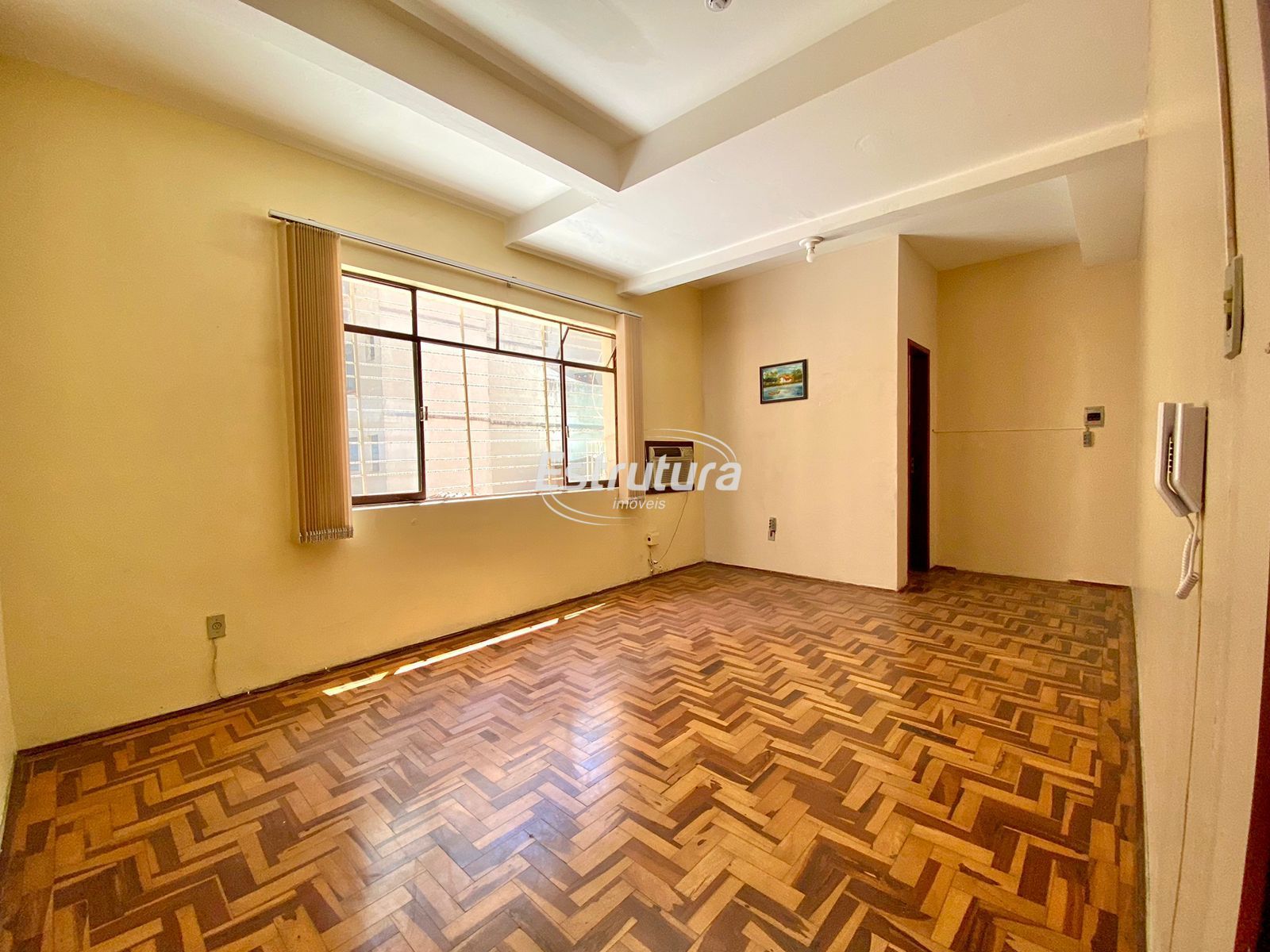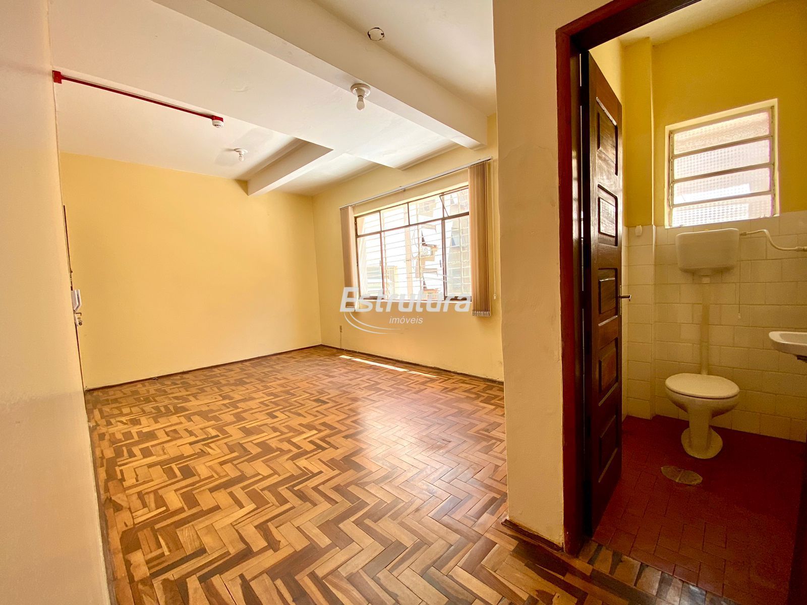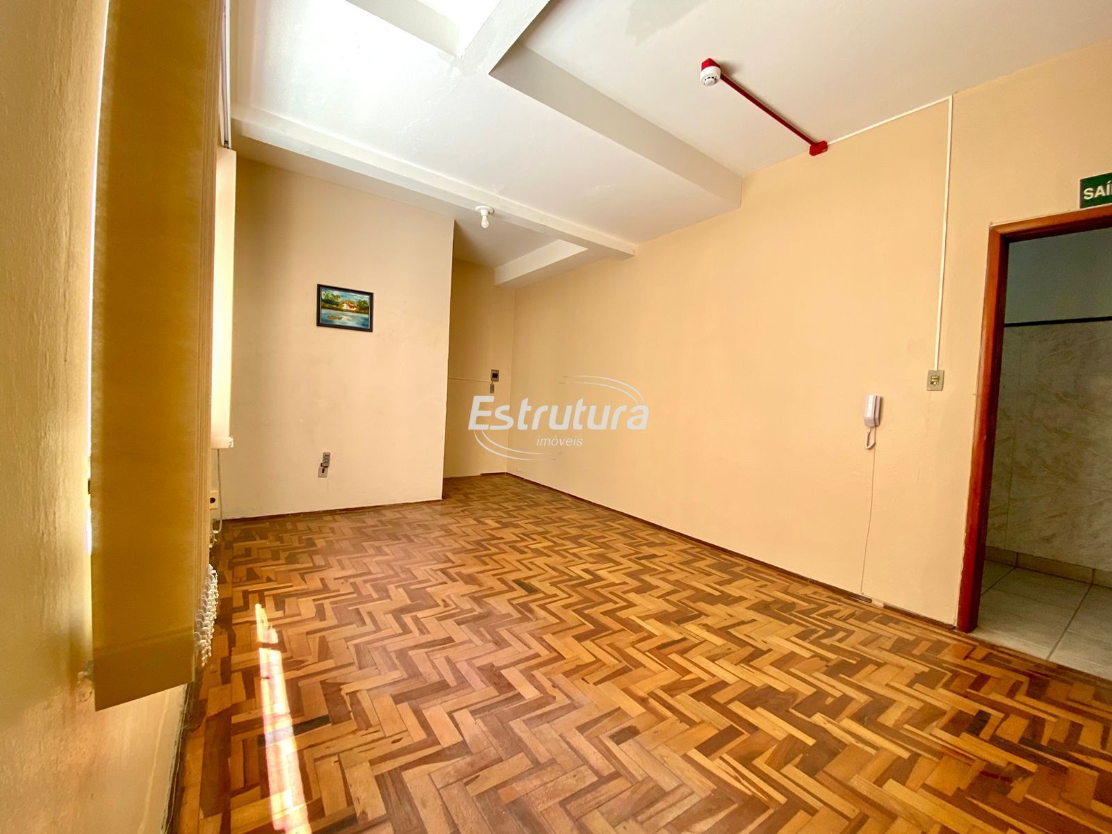 Sala comercial bem localizada no centro de Santa Maria - RS. Segura e gradeada, possui 33m² e conta com porteiro eletrônico, alarme e ar-condicionado, além de banheiro e pisos em parquet (área social) e cerâmica (banheiro).