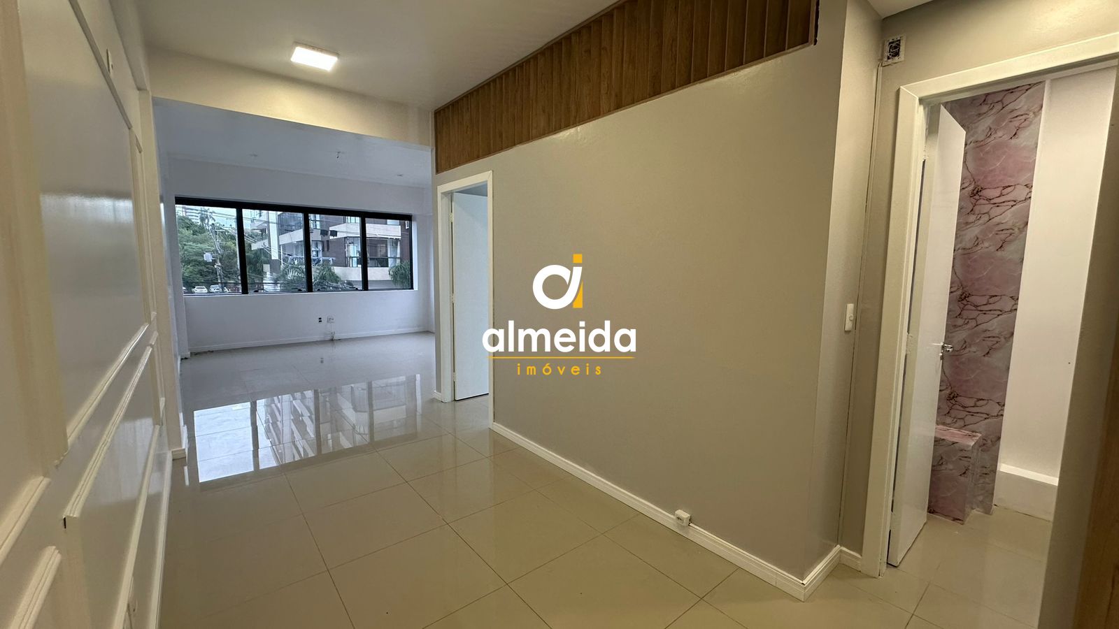 Sala Comercial ampla, acabamento em gesso e porcelanato, iluminada e bem arejada, medindo 34,29m² com ótima localização ao lado do Fórum. Possui 1 vaga de garagem.