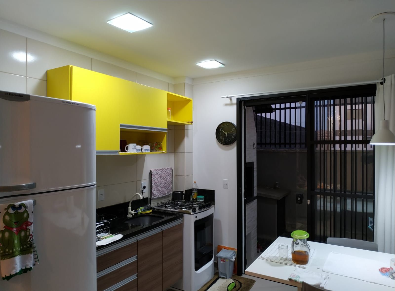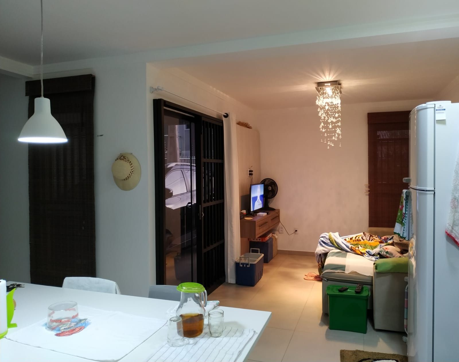 Sala e cozinha conjugadas, criando um ambiente amplo e integrado, ideal para momentos de convivência.