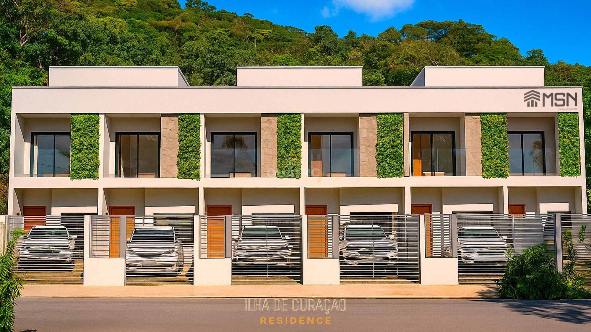 Três unidades de sobrados geminados disponíveis para a venda na Praia de Zimbros, com 150m² cada um.