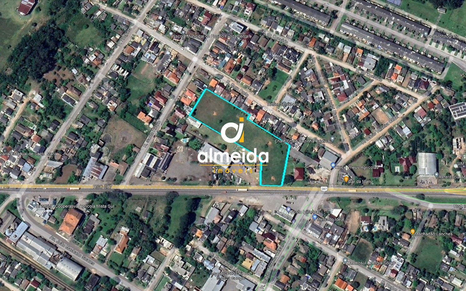 Terreno de 10000m² todo cercado, de frente para a RSC 287, frente do terreno 35m.
