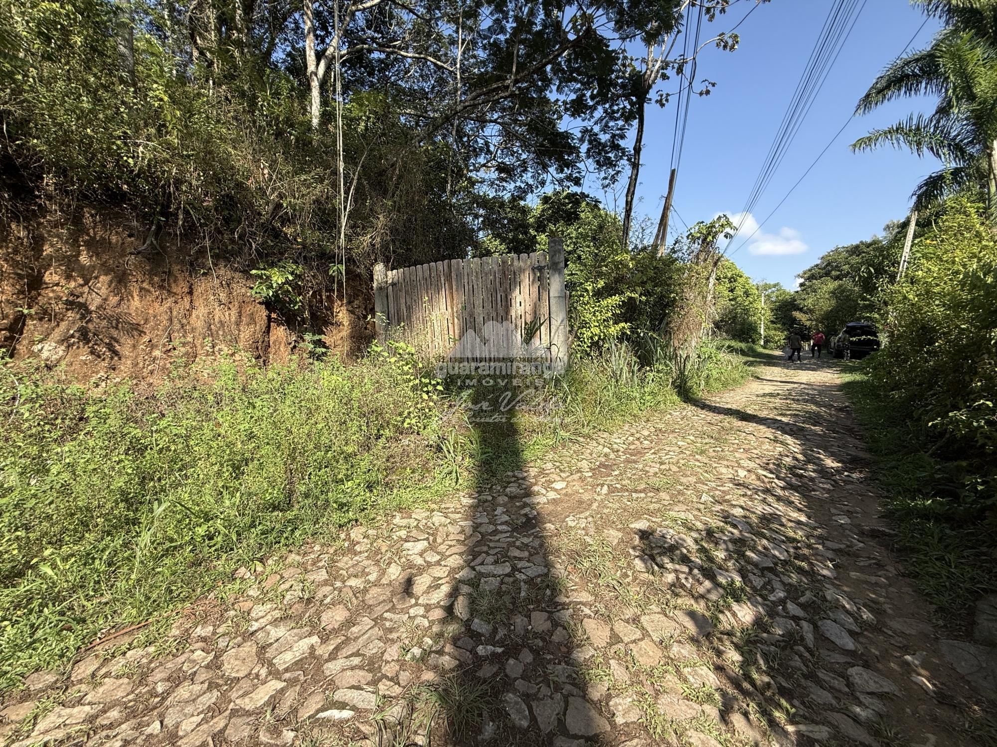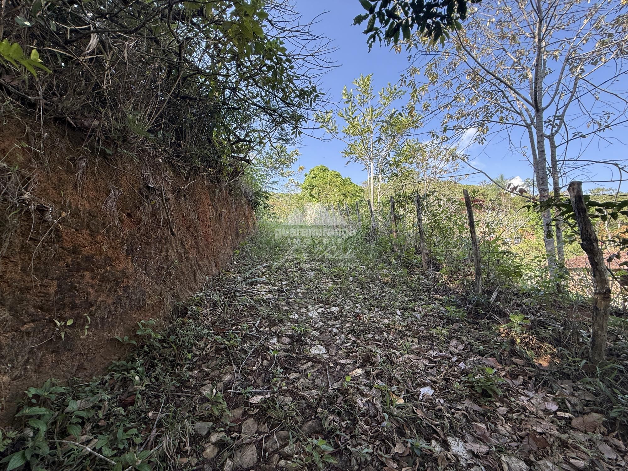 Terreno com dois platôs com vista nascente, com portão de acesso e calçamento.