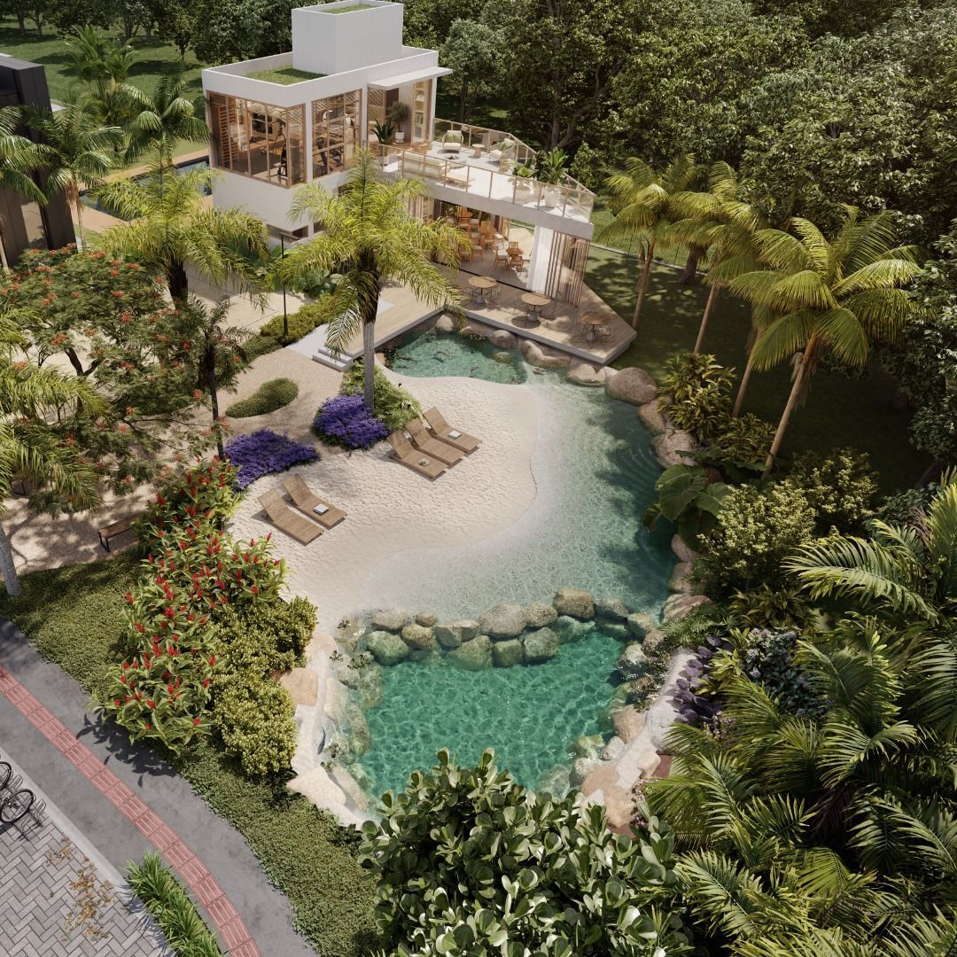 uma área com lago natural integrado a vida