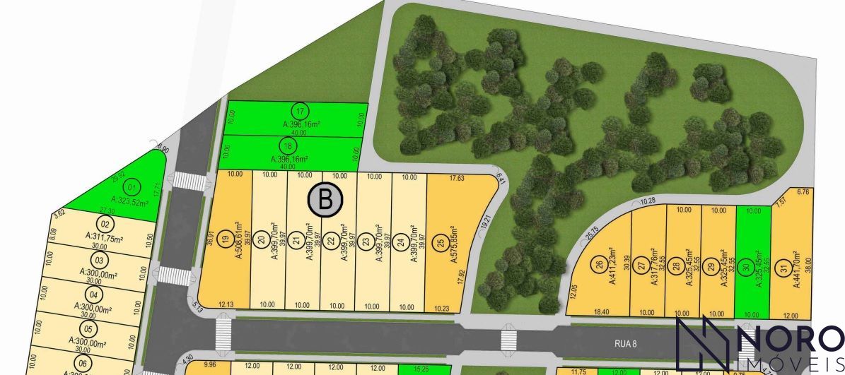 O terreno do lote 17, localizado na quadra B, oferece uma área total de 396m².