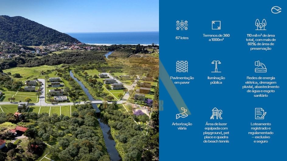 Lotes a partir de 360m², em um empreendimento único, cercado por natureza preservada, dunas, rio, mar e montanhas, um verdadeiro refúgio no litoral catarinense.
