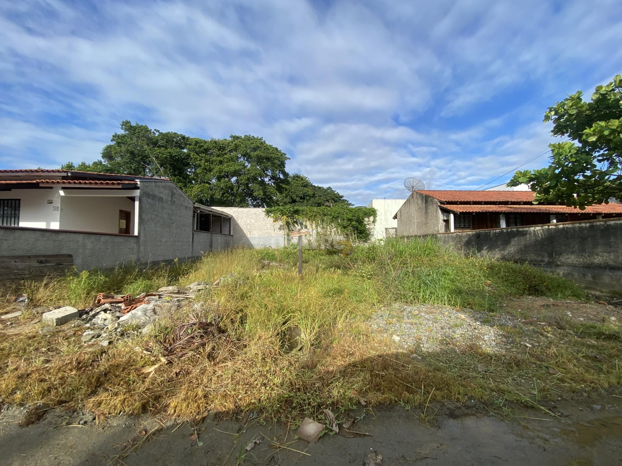 Terreno plano com 266m² no Zimbros a 400 metros da praia, murado nas laterais e fundos.